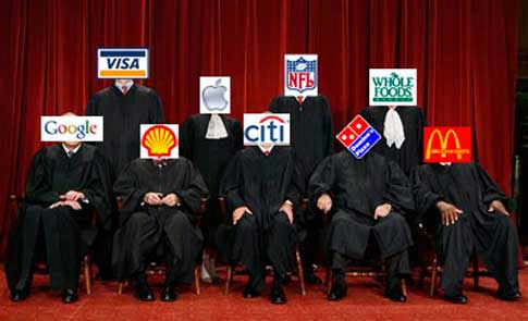 Delving deeper into these subjects only brings more unease as we learn that our self-inflicted eco-collapse is happening concurrently with the depletion of our carbon-based energy sources. Good God! Our food supply is at risk! We’re running straight for a cliff! Surely if we turn on the television set we will be greeted with warnings of our impending calamity, and our leaders will be doing everything in their power to save us. Holy Christ! Television has devolved into a mere propaganda tool of corporations! The politicians are whores to big business! The democratic process and elections are no more than an ultra-expensive ‘reality tv’ series funded by monied interests! The Supreme Court, along with all other mainstream institutions, has become a puppet of the corporatocracy.