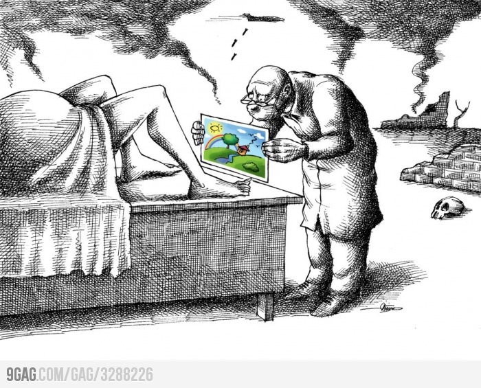 The ruling elite understood that people were not moved to act primarily by fact or reason but could be manipulated through emotion. This is the result – we live in a society utterly saturated with lies.