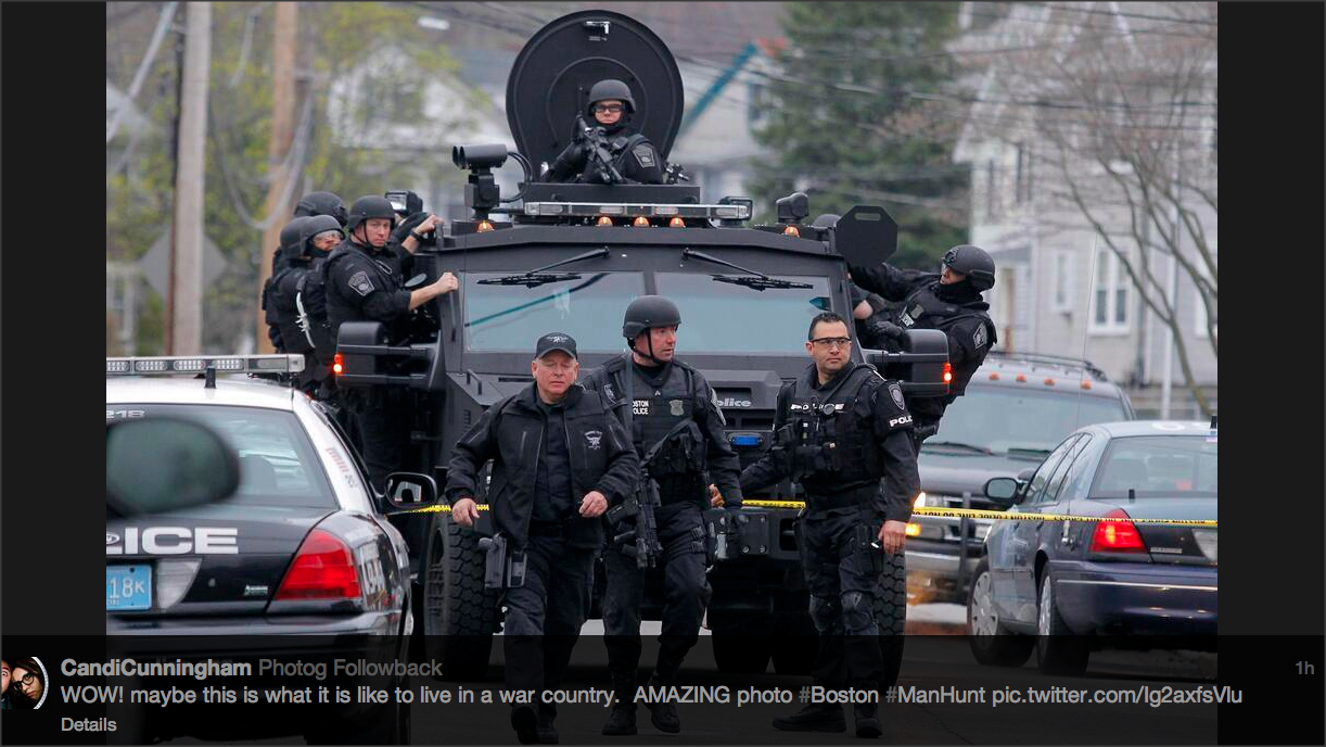 Many human monstrosities have burst forth from the bleak and soulless landscape of American suburbia, reaping their 15 minutes of infamy. The brothers Tsarnaev are simply the latest. American society, for the most part, does not exist; it’s been bought out, chopped up, and repackaged for the corporate state’s consumer culture. A society that has been broken up and atomized is ripe for control and plunder.