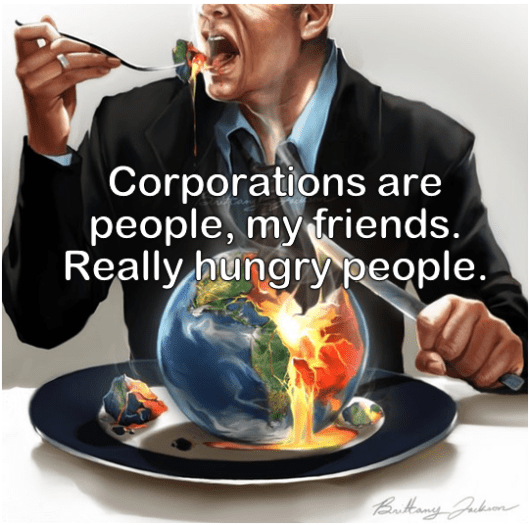 This massive money power takes hold of political power. Owning this unimaginably monstrous money-political power system they put their footprint on ecology that is changing the planet’s environment irreversibly.